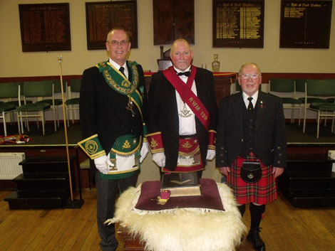 At the conclusion of this ceremony however Bro John McInally Cameron P.M. Lodge Kyle Kildrum No 1602 was presented to the assembled brethren and given honorary membership of the lodge much to the approval of everyone present.