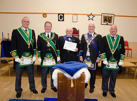 On Thursday, 26th October, 2017 the Provincial Grand Master Bro James Forrest, accompanied by Immediate Past Provincial Grand Master Bro John R McCormack and Substitute Provincial Grand Master Bro James T Kennedy attended Lodge Caledonian St John Royal Arch No 195.