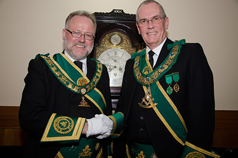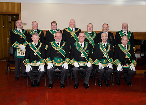 The Provincial Grand Master Bro John Reid McCormack having opened the lodge, welcomed everyone to the meeting and thereafter a deputation from sister provinces headed by T Wilson Aitken, Provincial Grand Master of the Province of Kilwinning was admitted. Formal pleasantries having been exchanged the elected office bearers were then installed by Provincial Grand Master Substitute David Stewart Irving in a most sincere and competent manner, much to the approval of the assembled brethren. |