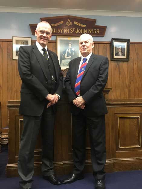 PGM Brother John R. McCormack headed a fine deputation to Lodge Kilsyth St John No 39 to conduct the Annual Visitation to Lodge 39.Warmly welcomed by the Master Brother Paul M. Leslie. The PGM then dispatched the business of the evening in his usual efficient manner.