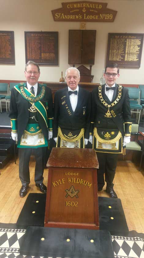 On Thursday, 16th November 2017 a deputation from the Provincial Grand Lodge of Dunbartonshire attended Lodge Kyle Kildrum 1602 to witness the presentation of a 50 year diploma to Past Master Bro Malcolm Tate.