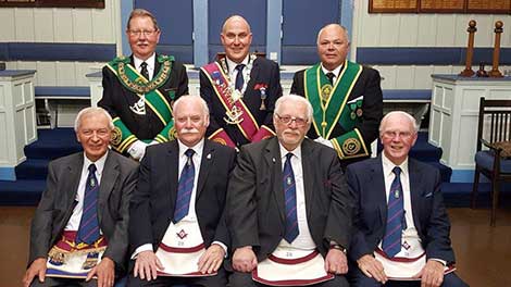 The Master Brother David John Henderson gave his own glowing remarks to the four Brethren, William Farmer 60, James McNeill Johnston Farmer 60, Edward Robinson 60 and Hugh Munro Lynch 50.