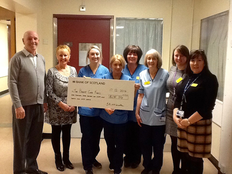 The amazing sum of £4381.50 was raised, this total being announced at the Lodge Christmas Dance where a number of attendees contributed significant amounts. The Master Bro Robert McCardle and his wife Moira later attended at the unit to present the cheque to staff. Bro McCardle has now been installed for a second term as Master and support for this cause will continue. |