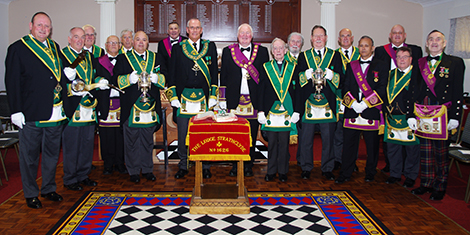 The lodge was opened by the Right Worshipful Master Bro Brian Marshall and thereafter a large deputation from the Provincial Grand Lodge of Dunbartonshire headed by the Provincial Grand Master Bro John Reid McCormack was admitted. The ceremony was then carried out by the Provincial Grand Master and Provincial Grand Chaplain Bro. Rev. John Kerr Clark ably assisted by Provincial Grand Director of Ceremonies Bro James W Clarkson.