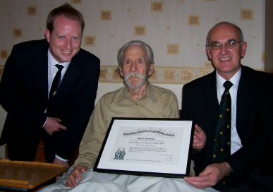 The Master of Lodge No. 147 presented Bro. Smith with a Jubilee Certificate in recognition of 50 years faithful service to the Craft.