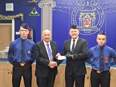 The 4th Clydebank Boys Brigade were presented with a cheque for £1000. The Immediate Past Master Brother James Kennedy and Secretary Brother McPherson presented the cheque on behalf of the brethren of Lodge Clydebank No 1234. p>