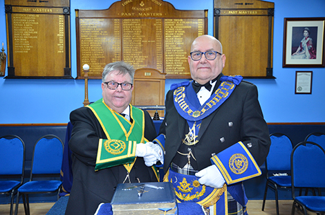 The Ceremony was conducted by Depute Grand Master Brother W. H Gauld with PGL in attendance. The Temple at Hardgate was looking wonderful with approximately 125 Brethren in attendance. The Provincial Grand Lodge Consecration Vessels were used for Rededication purposes. The Master of Cochno Bro Alexander Eadie carried out his duties on the day with a great deal of dignity. After the Ceremony the Lodge provided a wonderful meal at The Beardmore Hotel, Clydebank. Happy to Meet Sorry to Part Happy to Meet Again.