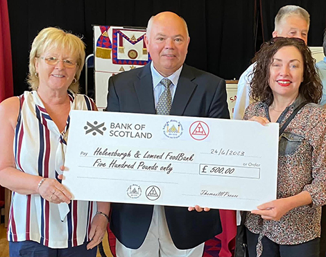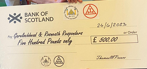 Congratulations to at St Modan No 1015 on their Open Day. An excellent day of profit and pleasure was had by all resulting in the presentation of 4 cheques to local charities. The Provincial Grand Master Brother Irving and his wife Letitia visited on the day and assisted in the presentations. A raffle was held resulting with the Provincial Grand Master brother Irving winning the star prize, which he kindly gifted back to the Lodge to assist in further Charitable work.