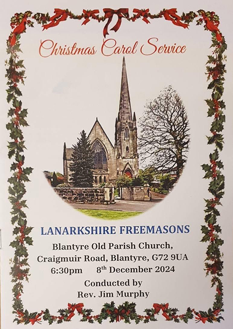 The Provincial Grand Master Bro. Irving accompanied by his wife Letitia and Granddaughters were warmly welcomed at Blantyre Old Parish Church for the Provincial Grand Lodge of Lanarkshire Middle Ward's Carol Service