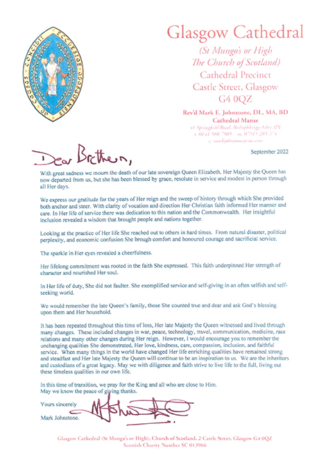 Communication from The Provincial Grand Chaplain Rev. Mark E. Johnstone.