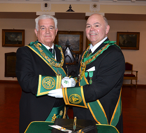 In excess of 125 brethren in attendance, The Provincial Grand Master Brother David S. Irving welcomed everyone to the Communication and thereafter a deputation of members of Sister Provinces headed by Brother Andrew Duncan Millar, Provincial Grand Master of Lanarkshire Middle Ward together with Brethren from all over Scotland was admitted. After conducting preliminary business Provincial Depute Grand Master Brother John Parker MacQueen carried out the Installation of the Elected Office Bearers. Provincial Grand Master Brother Millar spoke in favourable terms to the work of the day & The Sister Provinces thereafter retired.