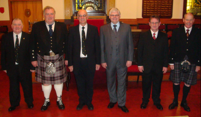On Thursday,15th January 2015 a deputation from the Provincial Grand Lodge of Dunbartonshire headed by Provincial Grand Master Depute Bro James Forrest attended Lodge Kyle Kildrum 1602 where Bro John McInally Cameron P.M. received the Honorary Grand Rank of Junior Deacon. more.... |